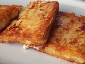 Lorsque l’ huile est chaud, placez le fromage et laissez pendant 2 min. Retournez délicatement le halloumi et laissez 2 min de l’ autre cote.